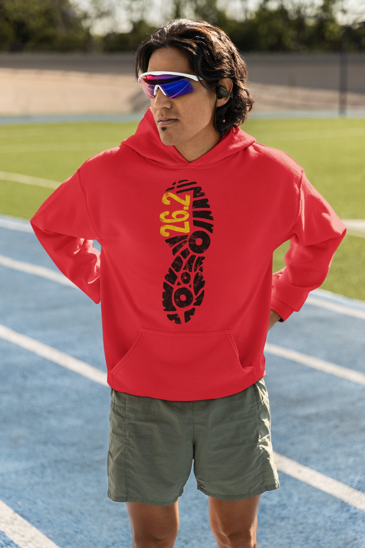 Display the iconic 26.2 marathon distance within a bold running shoe print. Simple, powerful, and instantly recognizable to every runner.