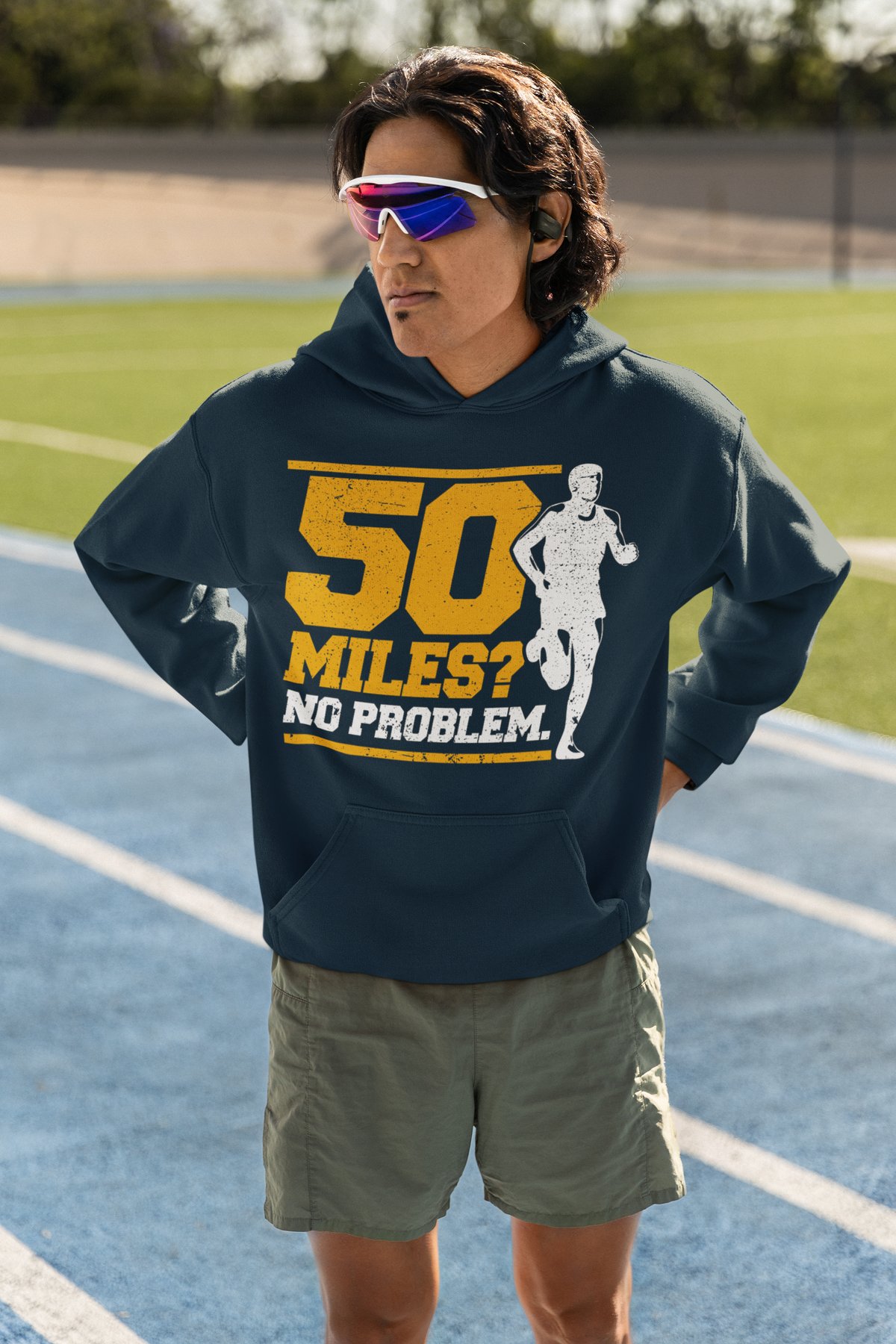 50 miles? No problem. While most people can’t imagine running 50 miles, ultrarunners consider it a standard weekend activity. This bold design with a runner silhouette exudes confidence.