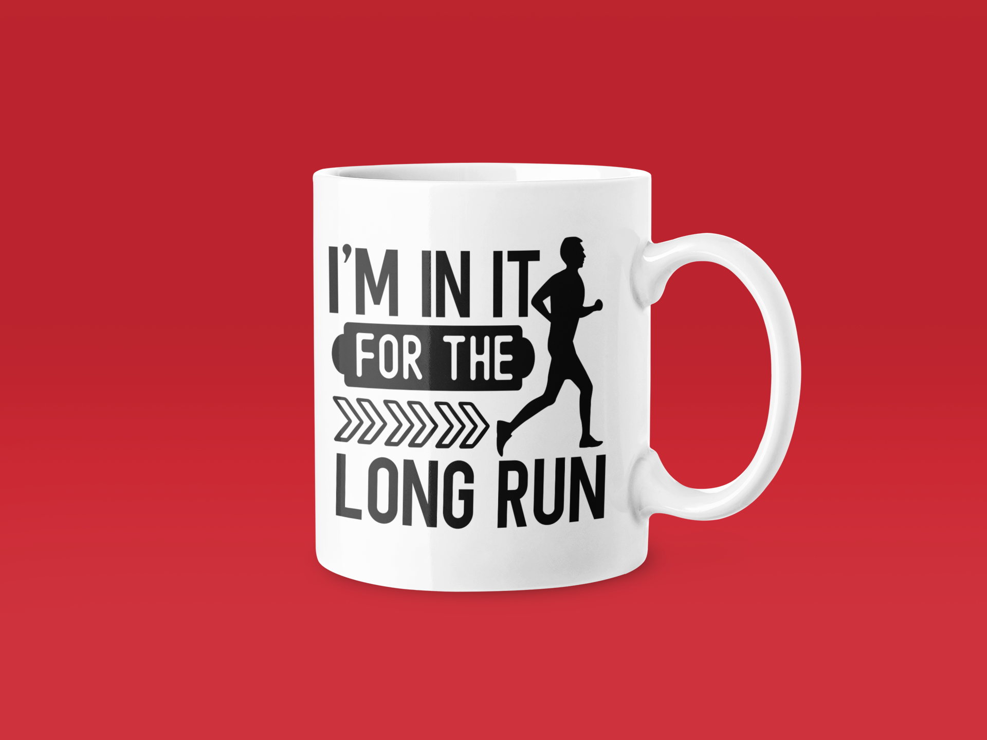 Bold In It For The Long Run design on a premium 11oz ceramic mug. DTF printed in Lancashire, UK. Dishwasher & microwave safe.