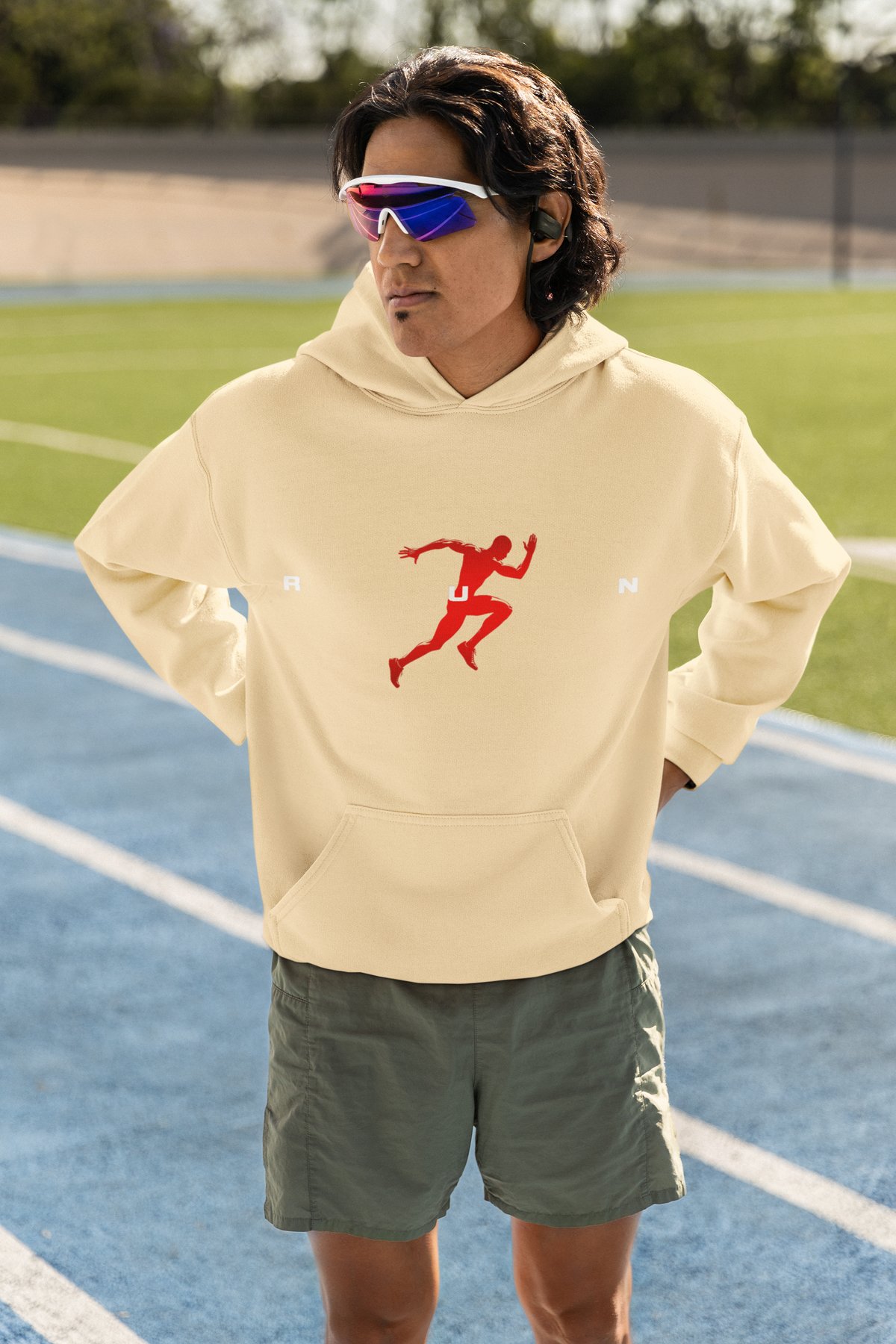 Sometimes one word says it all. RUN — with a striking red runner silhouette against a clean background. This minimalist design is for runners who let their actions speak louder than words.
