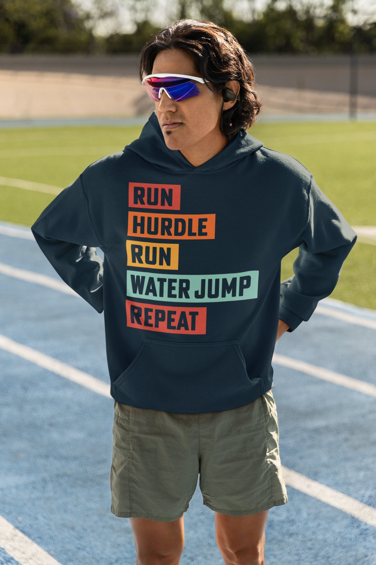 Run Hurdle Run Water Jump Repeat Hoodie – Steeplechase Design