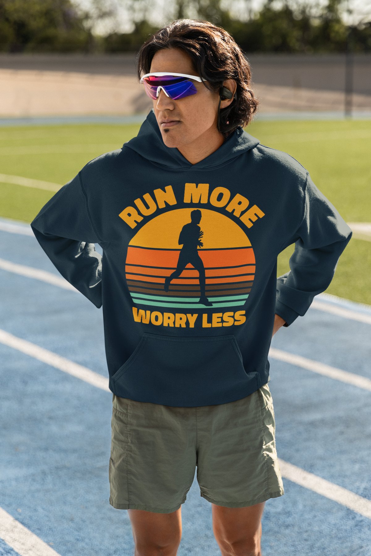 Run More Worry Less Hoodie – Retro Sunset Runner Silhouette