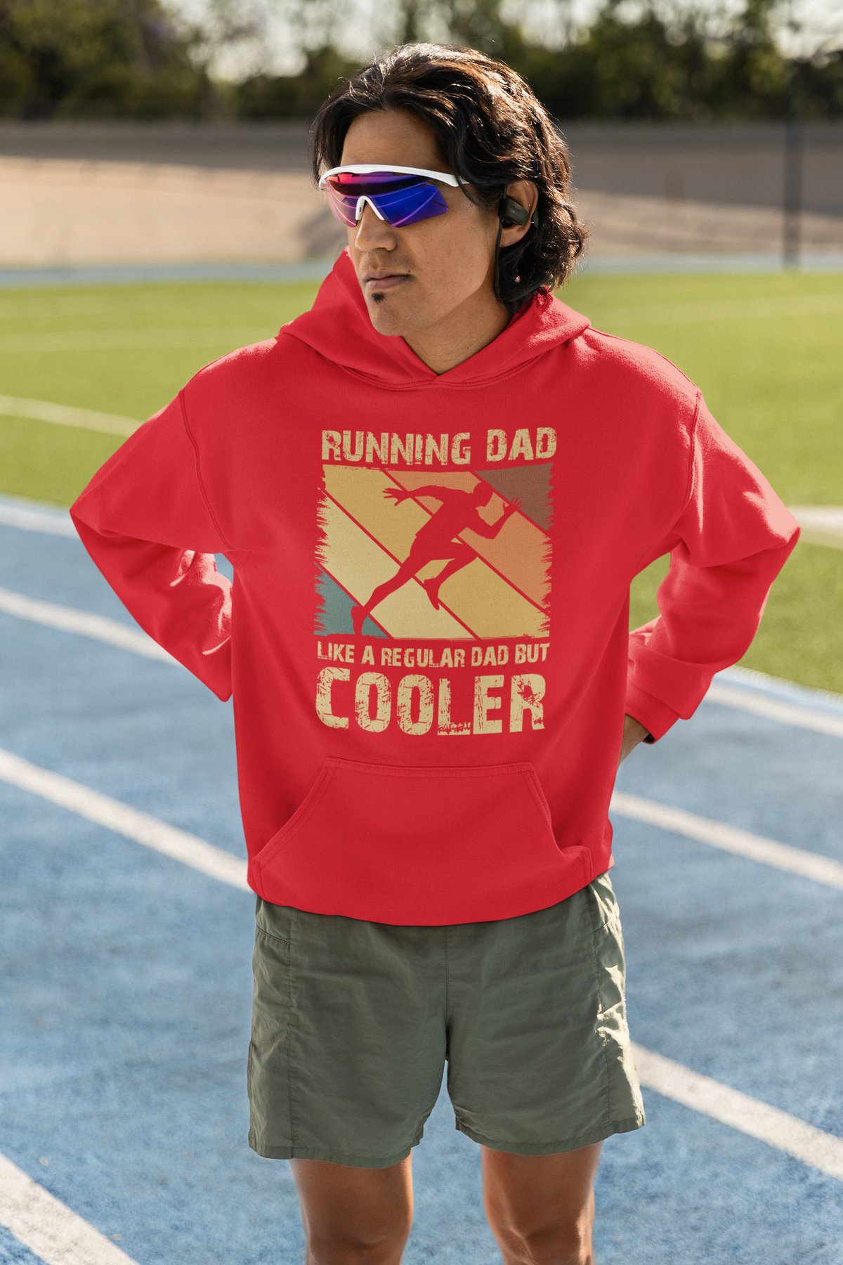 Running Dad — like a regular dad, but cooler. This retro vintage design with a dynamic runner silhouette celebrates the dads who are undeniably cooler because they run. Science says so.